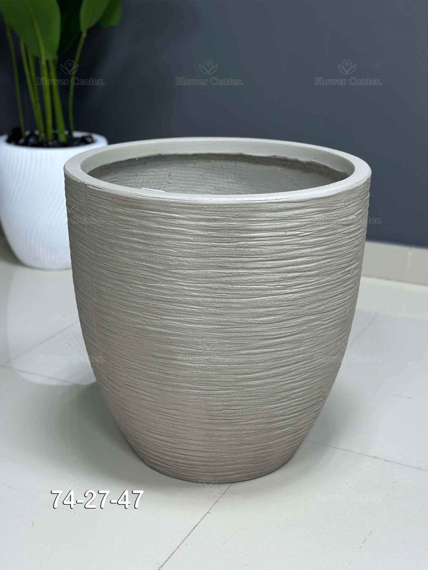 أصيص زراعة أسطواني عصري باللون الرمادي الفاتح – أصيص حديقة مزخرف مقاس 35*35*37 سم، مناسب للحدائق الداخلية والخارجية.